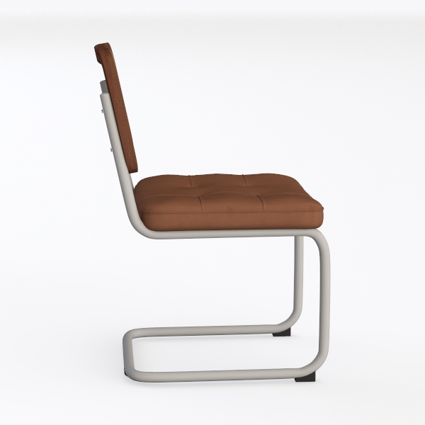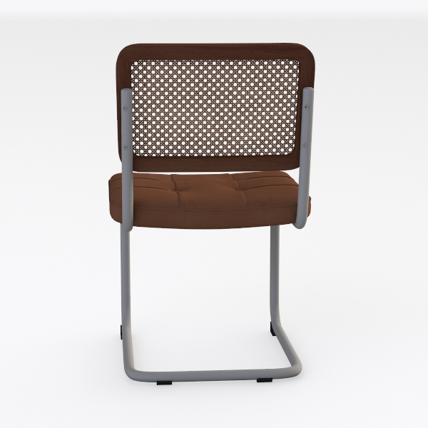 Inspired by mid-century modern design, blending vintage industrial charm with contemporary minimalism, this chair features soft, textured warm brown upholstery and sleek matte metal legs, adding industrial edge. The openwork backrest offers breathability, the tufted seat cushion plush comfort, balancing style and coziness. Ideal for modern living rooms or home offices, pairing with wooden coffee tables and geometric rugs. Contoured seat provides great lumbar support; lightweight, sturdy metal frame ensures durability and easy movement.