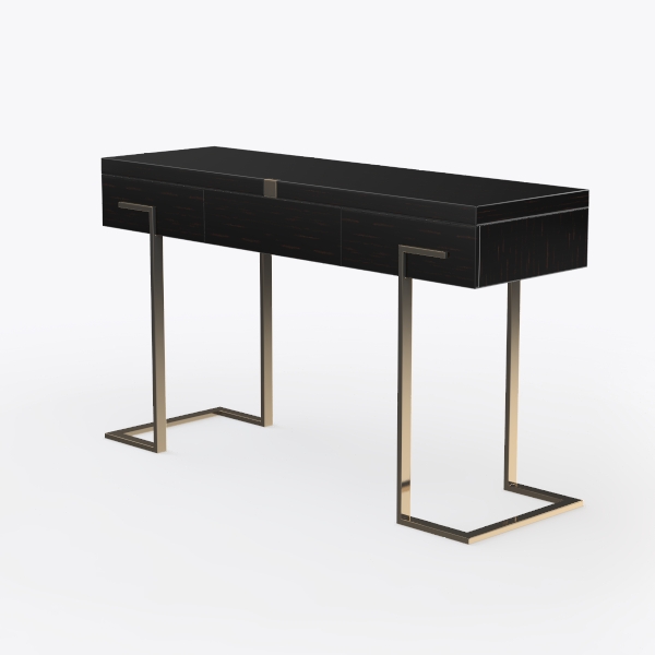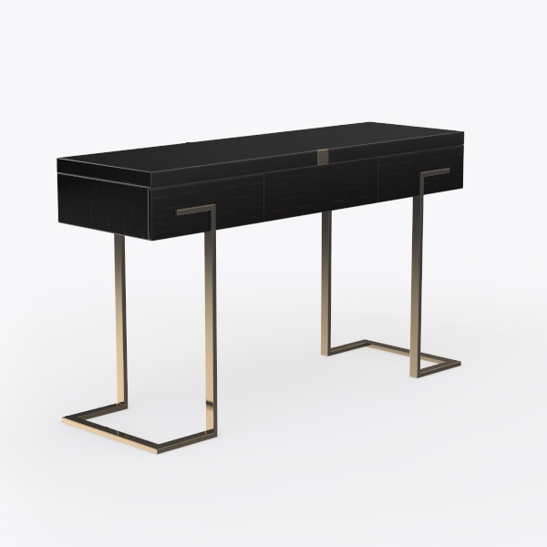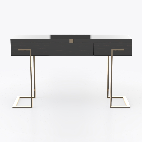 Inspired by modern minimalism, blending timeless elegance with contemporary clean lines, this piece features a smooth, matte black surface and sleek, gold-plated metal legs, exuding refined luxury. Ideal for a modern minimalist study or bedroom, pairing with marble accessories and warm lighting. Spacious drawers offer ample storage, balancing aesthetics with practicality for daily use.