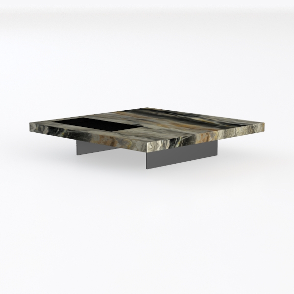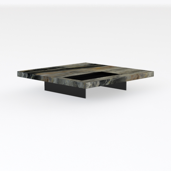 This coffee table draws inspiration from nature's artistry, with striking marble-like veining in soft grays, blacks, and warm golds. Its smooth, cool-to-the-touch surface exudes luxury, while sleek black metal legs add modern edge. Perfect for a contemporary living room, pairing beautifully with minimalist sofas and neutral decor. A central hollowed-out section offers practical storage for remotes or books, blending style and utility seamlessly.