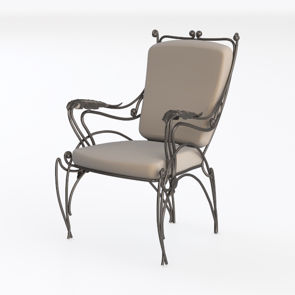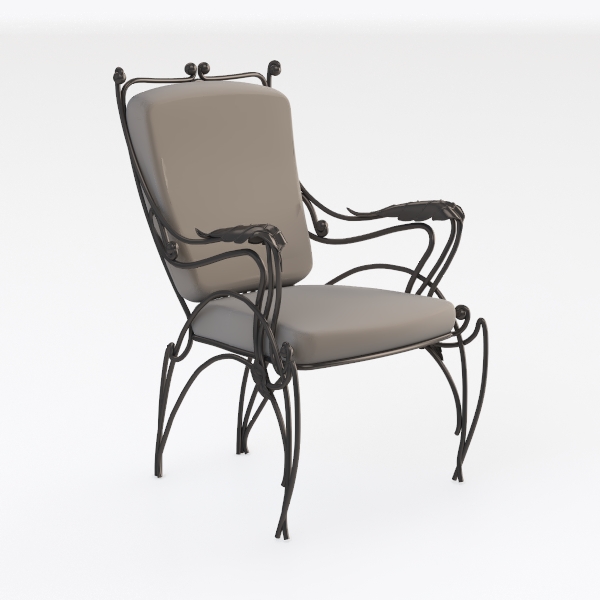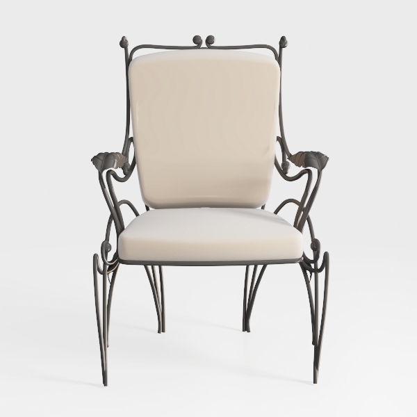 Inspired by Art Nouveau, its curved iron frame with floral motifs blends organic elegance and vintage charm. The matte black metal shows hand-forged texture, while the soft off-white upholstery adds warmth. Sleek lines and delicate details create a sophisticated focal point, ideal for a retro or French country living room with velvet sofas and brass accents. Broad armrests cradle elbows, and the deep seat ensures relaxed seating.