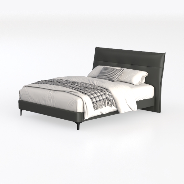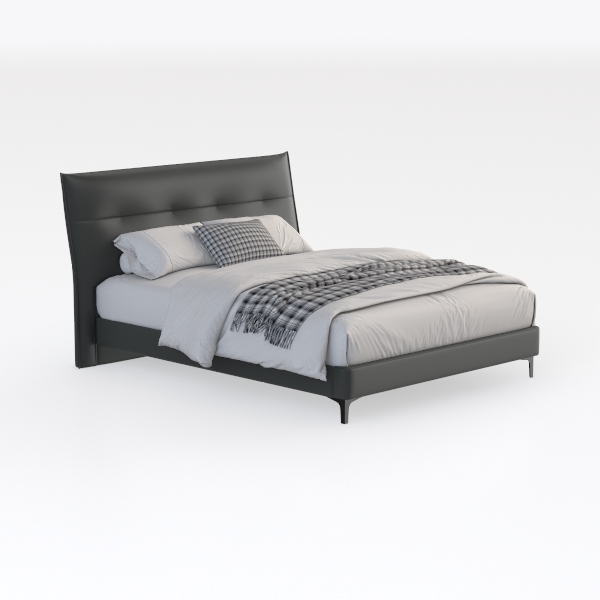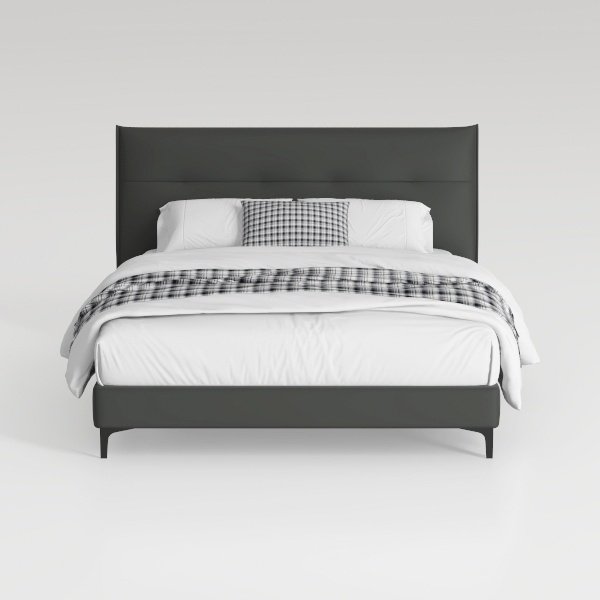 Inspired by minimalist design, this bed features a soft upholstered headboard, smooth white linen sheets, and a checkered throw adding texture. Its clean lines and neutral palette create a fresh, calming vibe, ideal for modern minimalist or Scandinavian bedrooms. Sturdy frame with wide headboard offers excellent back support, perfect for restful nights.