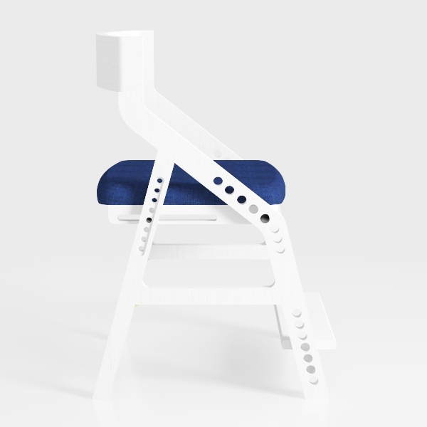 Designed with geometric minimalism, this chair merges clean lines and playful cutouts. Smooth white frame contrasts softly with plush blue upholstery, creating a fresh, airy look. Ideal for modern, Scandinavian living rooms or home offices, pairing beautifully with neutral tables and soft textiles. Lightweight yet sturdy, it ensures comfort, with strategic cutouts adding subtle visual interest without sacrificing stability.