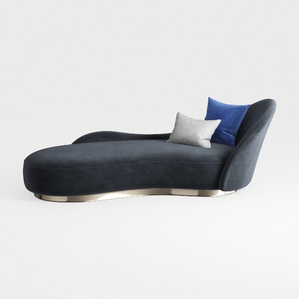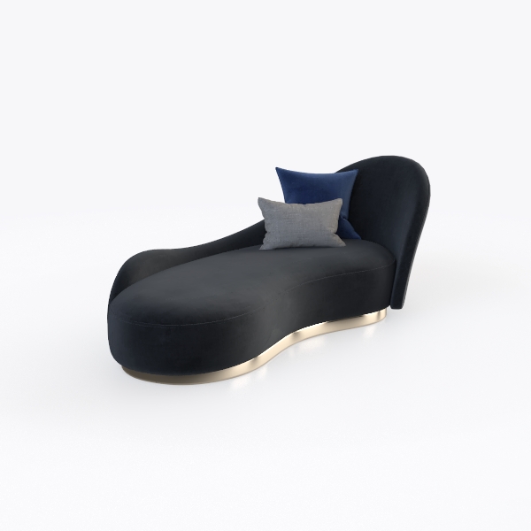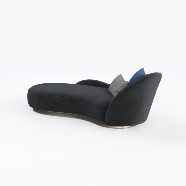 Perfect for a modern living room or a serene bedroom, it pairs beautifully with marble side tables and gold-accented lighting, enhancing its modern-luxury appeal. The deep, curved design follows the body’s natural contours, offering exceptional comfort for lounging, napping, or even casual gatherings. Its metallic base adds a touch of sleek elegance, grounding the piece without overwhelming the eye, making it a functional yet visually striking addition to any space.