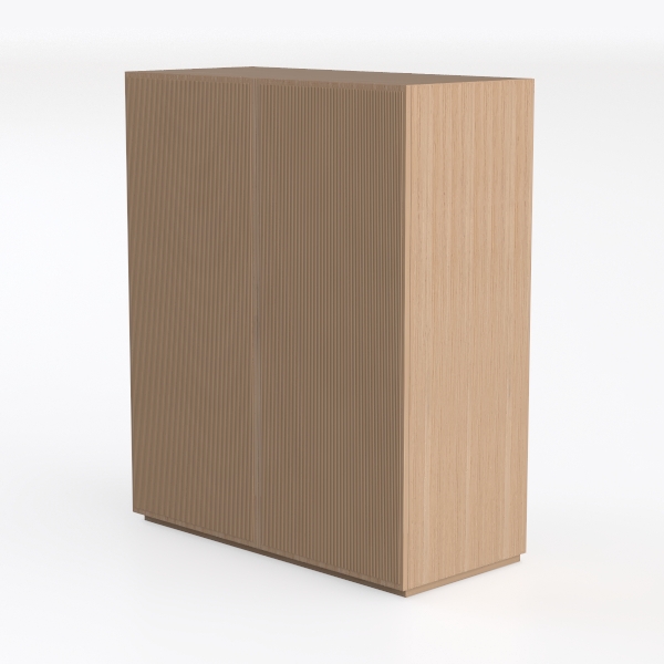 Inspired by natural wood grain and clean geometric lines, this cabinet boasts a warm, smooth texture with vertical grooves that create a subtle, rhythmic visual flow. Its minimalist design suits modern living rooms or Scandinavian spaces, complementing light walls and wooden floors. Spacious interior with soft-closing doors offers ample storage for books, decor, or daily essentials.