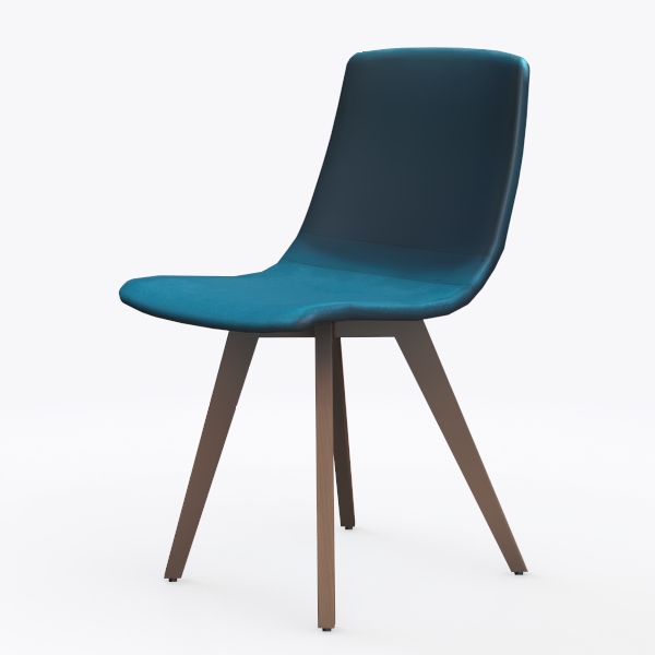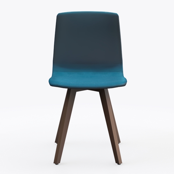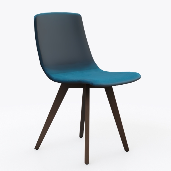 Inspired by balancing softness and sturdiness, this chair has a smooth, teal upholstered seat with a velvety touch, paired with warm, dark wooden legs showing natural grain. Its clean lines and lightweight design suit modern, Scandinavian dining or living spaces, complementing wooden tables or metal accents. The contoured back and stable base ensure comfortable, everyday use.