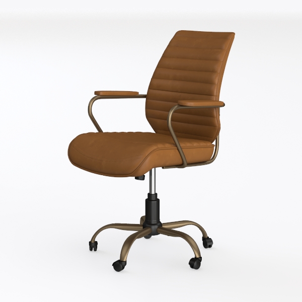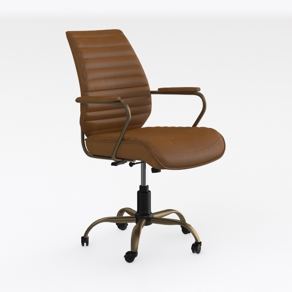 Laura Davidson Furniture SOHO II Ribbed Office Chair - Mid Back Desk Chair, Ergonomically Designed with Arm Rest & Swivel, Made of Faux Leather, Brown, Computer Chair