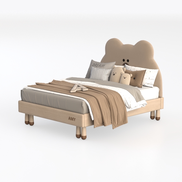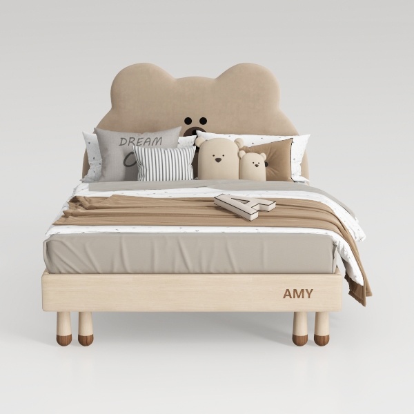 Inspired by playful animal forms, this bed features a soft, bear-ear headboard blending whimsy and warmth. The plush upholstery invites gentle touches, while the light oak frame adds natural, grounded feel, creating a cozy vibe. Ideal for a girl’s bedroom, it pairs with soft pastels and cute toys, enhancing sweet, minimalist aesthetic. Sturdy legs ensure stability, with ample headboard offering a cozy spot for reading or napping.