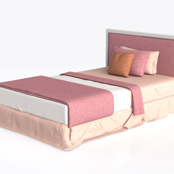 Inspired by soft, warm natural tones, this bed features a textured blush pink fabric headboard. The plush, inviting surface and neutral base with soft pink accents create a cozy, serene vibe. Perfect for a modern, minimalist bedroom, it pairs beautifully with wooden nightstands and linen curtains. A generous headboard offers excellent support, while the soft, breathable bedding ensures restful sleep.