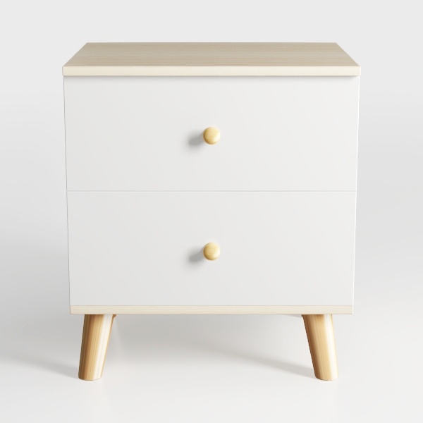 Inspired by Scandinavian minimalism, this nightstand features smooth white drawers with warm wooden knobs and legs, creating a fresh, clean look with subtle texture. Perfect for modern bedrooms, pair it with light linen bedding and wooden headboards. Spacious drawers offer clutter-free storage, while slim legs add airiness, blending style and functionality seamlessly.