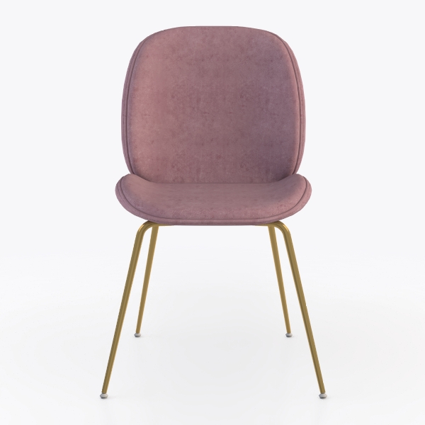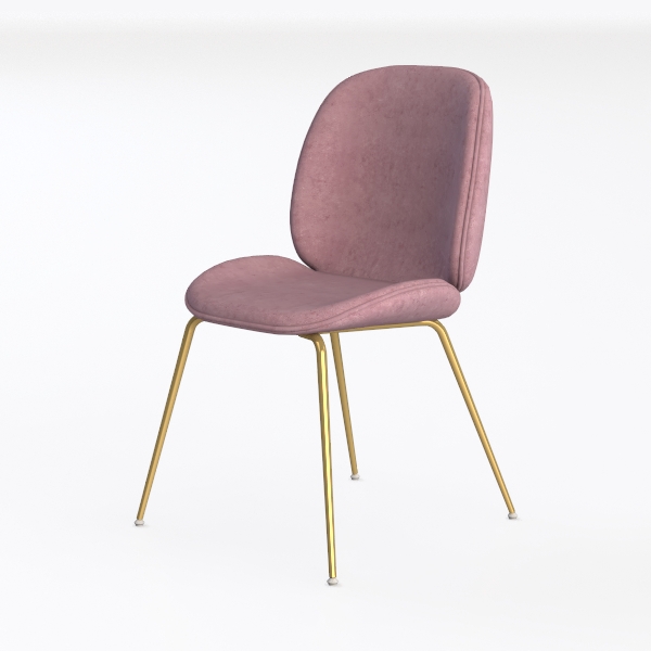 Designed with soft organic curves and sleek minimalism, this chair embodies modern elegance. Its velvety pink upholstery offers warm tactile comfort, while polished gold metal legs add subtle luxury with their sheen. Perfect for a contemporary living room or dining area, it pairs beautifully with marble tables and metallic pendant lights. The contoured seat ensures excellent back support, making it both stylish and comfortable for extended use.