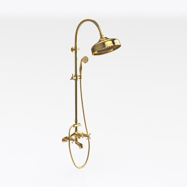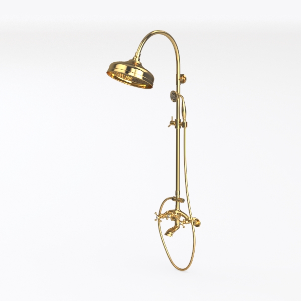 gotonovo Bathroom Exposed Shower Fixtures 8 Inch Rain Showerhead Double Cross Handles 2 Function Wall Mount Shower Faucet Set, Brass Handheld Spray, Polish Gold