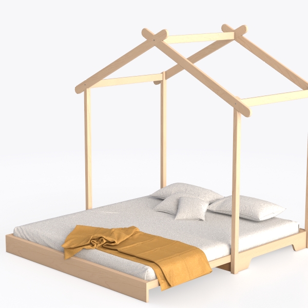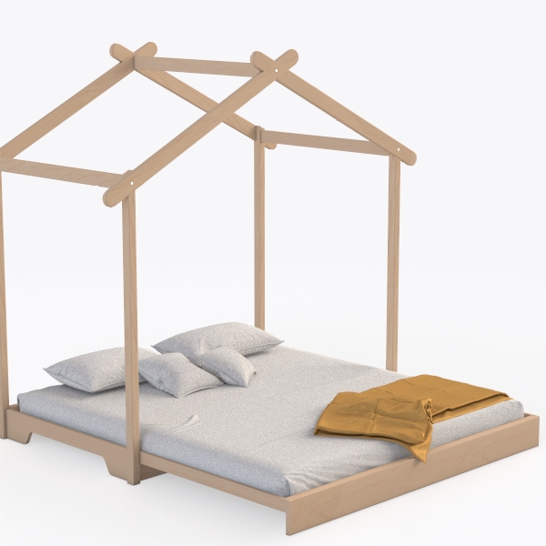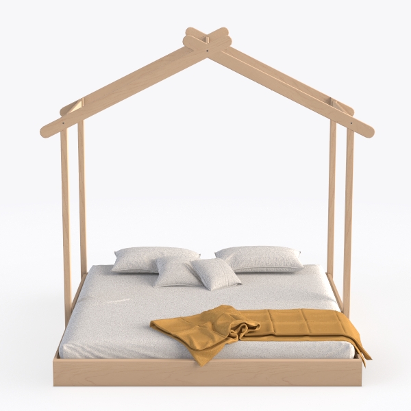 Inspired by the cozy, sheltering vibe of a childhood home, this bed has a soft, house-shaped wooden frame. Natural wood grain gives a warm, smooth touch, while the light structure creates an airy, open look. Ideal for minimalist or Scandinavian-style bedrooms, it pairs well with soft linen sheets and neutral decor. A sturdy base ensures stability, making it a safe, comfortable spot for rest.