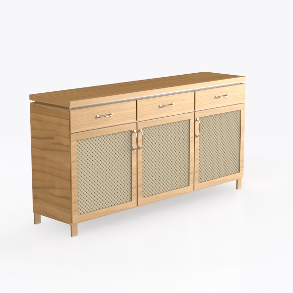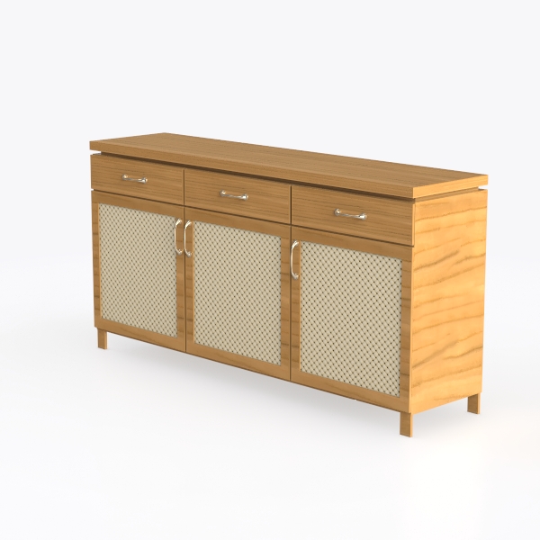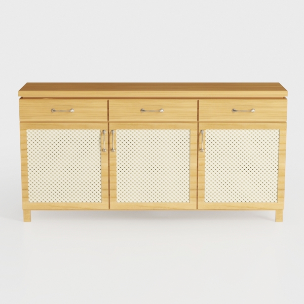 Inspired by natural textures and minimalist Scandinavian design, this cabinet blends a warm, smooth wooden surface with intricate woven paneling. Sleek chrome handles add subtle modernity, while spacious drawers and closed cabinets offer ample storage, balancing style and practicality—ideal for a serene living room or dining area, complementing modern minimalism and coastal vibes.