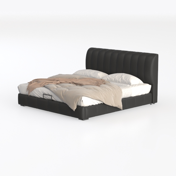 Inspired by minimalist elegance, this bed features a sleek black upholstered headboard with vertical channel tufting, blending sophistication and comfort. Its smooth, high-quality texture invites gentle touches, while clean lines offer a calm visual appeal. Ideal for modern, Scandinavian, or contemporary bedrooms, it pairs with warm woods and soft lighting. A sturdy frame with hidden storage adds practicality, making it a perfect blend of style and functionality for a serene sleep space.
