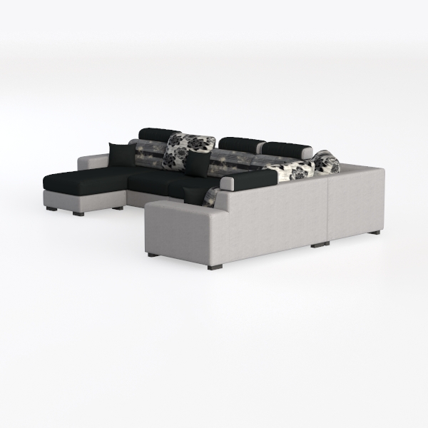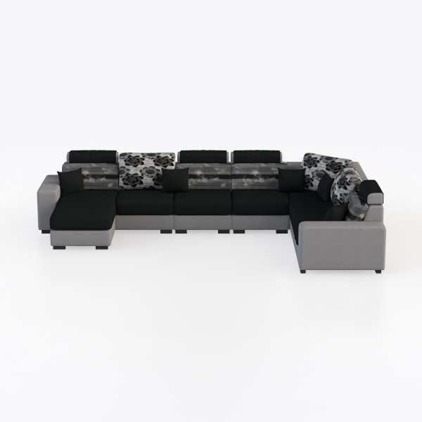 This generously proportioned L-shaped sofa embodies a harmonious blend of minimalist design and everyday comfort, inspired by the desire to create spaces that feel both expansive and intimate. Its frame, wrapped in a soft light-gray upholstery, exudes a calm, understated presence, while the deep, plush black cushions invite relaxation—their texture smooth yet resilient, offering a satisfying sink-in without sacrificing support. Contrasting the neutral base, the scatter cushions, adorned with subtle charcoal-and-ivory floral patterns, add a layer of visual interest, their delicate print catching light to enhance the room’s depth.
