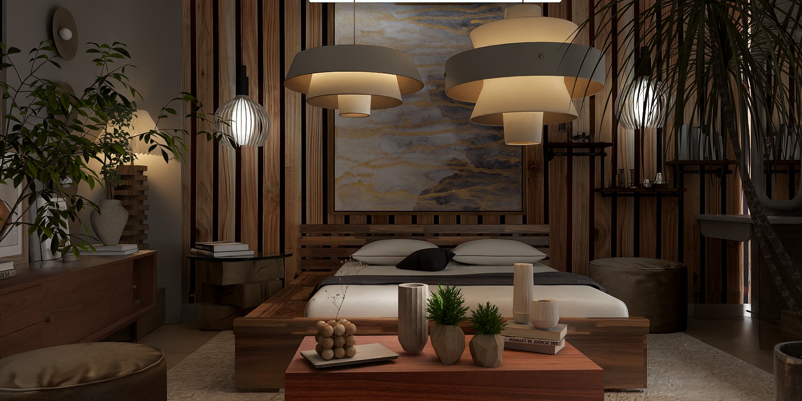 Inspired by mid-century modern design, this wooden sideboard blends natural warmth with clean lines. Its smooth, polished surface and rich walnut tones create a tactile, grounded feel, complemented by soft lighting and framed art. Ideal for minimalist or Scandinavian living rooms, it pairs beautifully with neutral walls and potted greenery, while spacious drawers and open shelves offer practical storage, balancing utility with a serene, curated look.