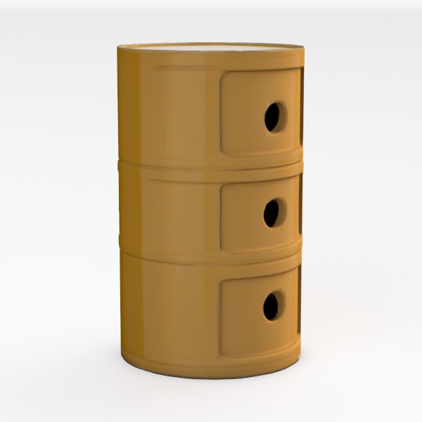 Inspired by mid-century modern design, this cylindrical cabinet features warm yellow, smooth glossy surfaces and three circular handles, blending retro charm with contemporary simplicity. Its tactile appeal and playful handles make it ideal for minimalist living rooms or bedrooms, pairing with neutral sofas and greenery, while the round drawers offer ample storage, balancing function and style.