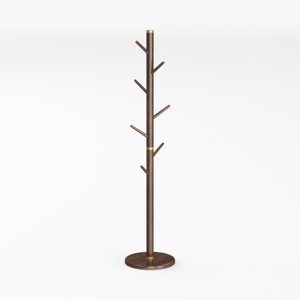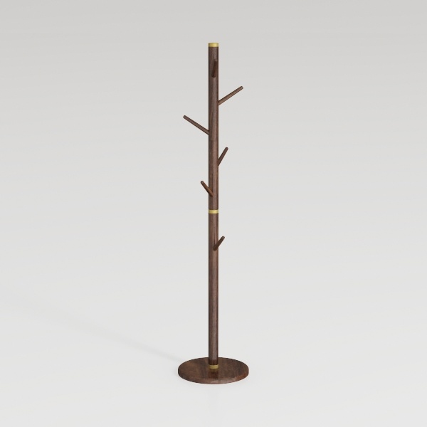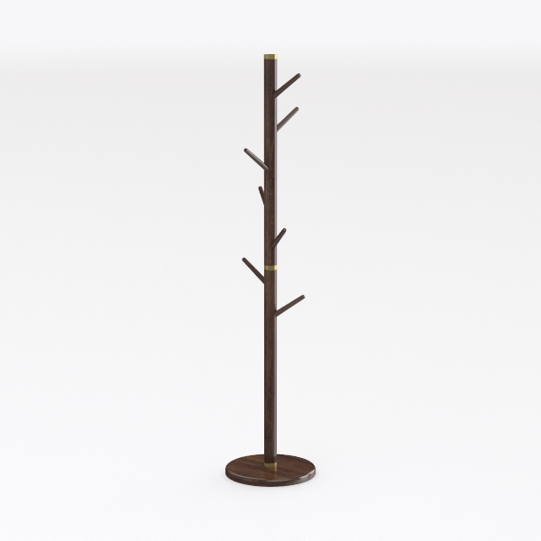 Inspired by natural tree branches, this freestanding organizer blends organic charm with modern simplicity. Crafted from smooth, dark wood with subtle grain, it features thin brass rings for warm contrast, casting soft shadows that enhance its elegant silhouette. Perfect for modern minimalist or Scandinavian entryways, it pairs beautifully with wooden floors and neutral walls, its sturdy base balancing functional hooks for coats, scarves, and bags.
