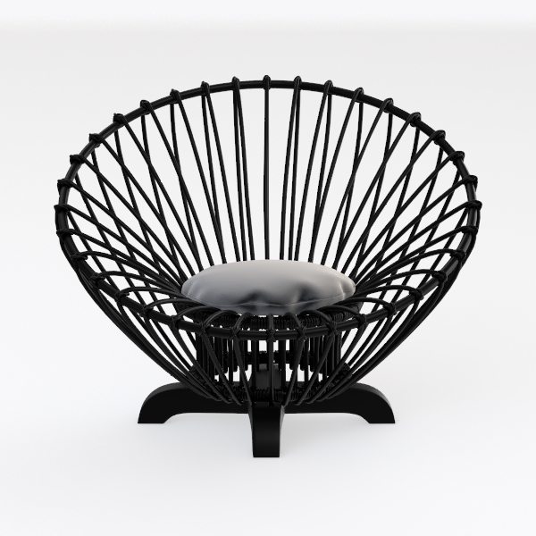 This elegant piece draws inspiration from the art of hand-woven coastal craftsmanship, merging traditional weaving techniques with modern simplicity. Its structure features sinuous, matte black rattan-like strands, meticulously woven into a fluid, pod-shaped silhouette that feels both light and grounded. The contrast between the dark, textured framework and the soft, creamy white upholstered seat creates a striking visual balance—each strand curves gently, catching light to highlight the organic flow, while the matte finish adds warmth, avoiding harshness. The seat’s supple fabric invites relaxation, its softness a perfect complement to the chair’s airy frame.