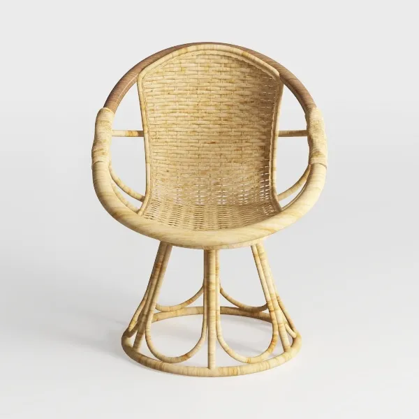The surface feels delightfully tactile: the outer frame offers a gentle, slightly rough texture from the natural rattan, while the woven seat is smooth and cool to the touch, ensuring comfort even on warm days. Visually, its curved backrest and slender, intersecting legs create a soft, inviting profile, balancing organic softness with structural stability.