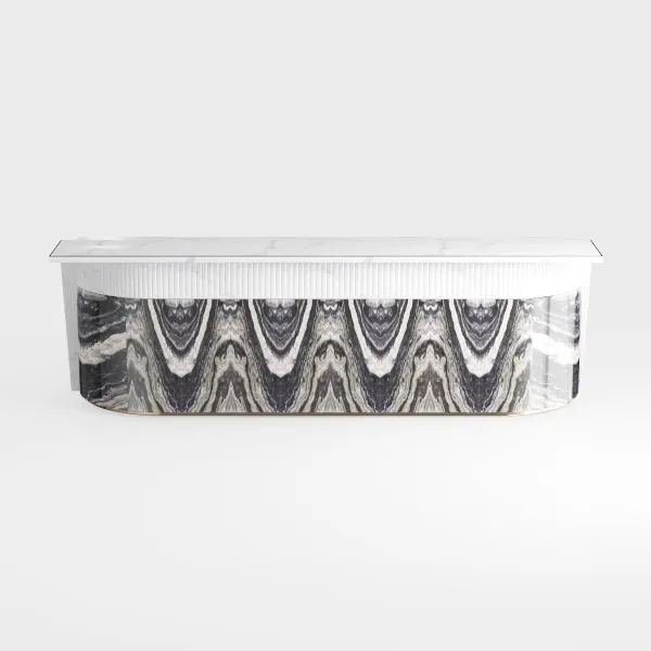 Inspired by natural stone's elegant texture and modern minimalism, this sleek countertop blends purity with clean lines. Its smooth, white marble surface features subtle veining, reflecting light to create a fresh, bright vibe. Perfect for modern-luxe kitchens or bars, pair it with metallic faucets and minimalist cabinets for sophistication. The vertical striped middle section offers hidden storage, balancing style and functionality for daily use.