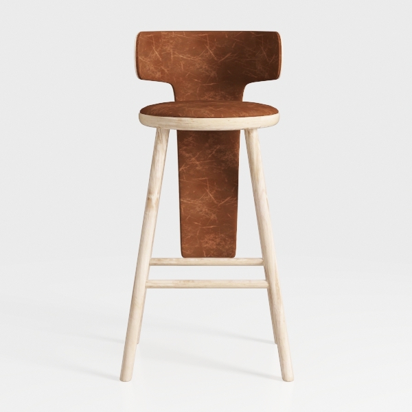 Designed with mid-century modern charm, this stool takes cues from natural textures and warm craftsmanship. The textured brown leather seat and backrest offer a soft, inviting touch, while light wood legs add a smooth, natural contrast, creating a warm, rich visual. Ideal for a sleek kitchen island or cozy bar corner, it elevates minimalist and retro styles, with a sturdy frame and comfortable height ensuring long-lasting comfort.