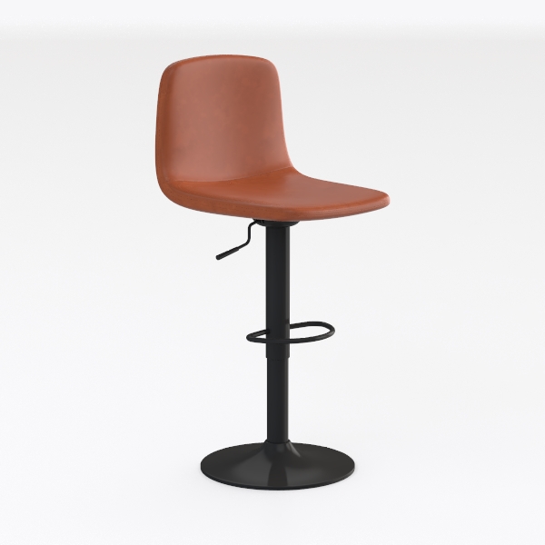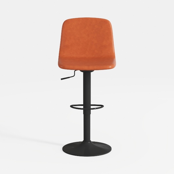 Designed with mid-century modern charm, this bar stool features a soft, textured orange leather seat that offers a warm, inviting touch. Its sleek black metal frame, with a stable base and adjustable height lever, blends durability with style. Perfect for a minimalist kitchen island or home bar, it pairs beautifully with marble surfaces and geometric lights, ensuring both comfort and aesthetic appeal.