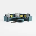 This elegant sofa takes cues from the organic curves of art deco architecture, reimagined with modern comfort at its core. Its soft, rounded silhouette feels both sculptural and approachable, wrapping around the room to create a cozy, inclusive space. The rich teal upholstery, with a subtle velvet sheen, catches the light gently, inviting fingers to sink into its plush texture—warm, sumptuous, and surprisingly lightweight in its visual presence. Intricate tufted details along the edges add refined depth, while the mix of throw pillows elevates the design: swirling gray-and-white marble-patterned cushions contrast beautifully with vibrant gold ones, creating a balanced blend of bold and understated charm. A matching ottoman, plump and rounded, sits at its center, offering extra seating or a perfect footrest.