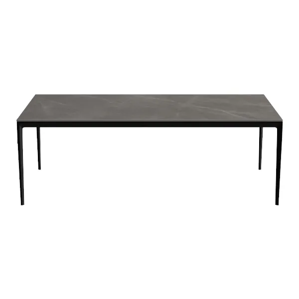 Designed to blend urban minimalism with natural textures, this table features a smooth, gray surface with subtle stone-like veins. Its matte gray top offers a cool, tactile feel, while sleek black metal legs add structural elegance, balancing visual harmony. Perfect for modern, Scandinavian, or minimalist living/dining rooms, it pairs beautifully with soft sofas, woven rugs, and warm ambient lighting. Slim, stable legs ensure sturdiness, and clean lines suit small spaces, enhancing areas with understated sophistication.
