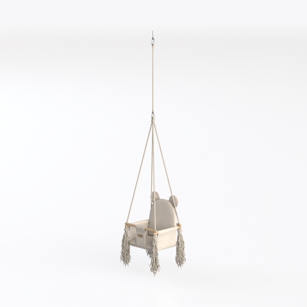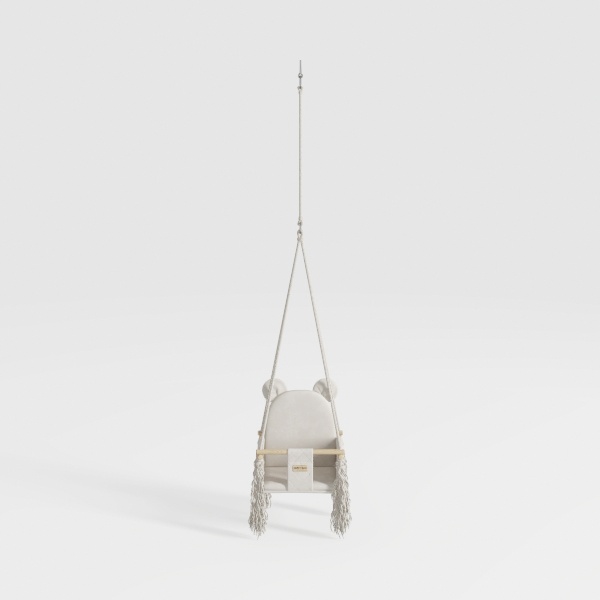 Designed to evoke cozy treehouse retreats, this hanging chair features soft, textured fabric with tasseled edges, creating a light, airy presence. Its minimalist form, complemented by wooden accents and potted greenery, suits bohemian or Scandinavian spaces—ideal for a serene reading nook or bedroom. Spacious and plush, it offers comfortable seating with a handy pocket for small items, blending style and functionality seamlessly.