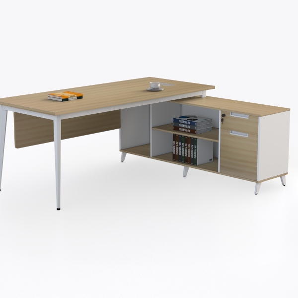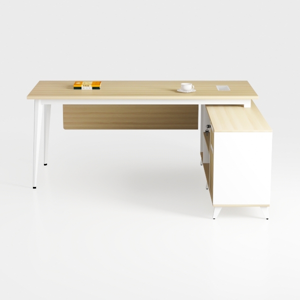 Designed with minimalist aesthetics and practicality, this piece takes cues from modern living. Warm wood grain contrasts with sleek white metal legs, offering a smooth, cool touch. Clean lines and bright tones create an airy look, ideal for home offices or studies. A compact drawer unit provides hidden storage, while the spacious surface fits laptops, books, and essentials, balancing style and function.
