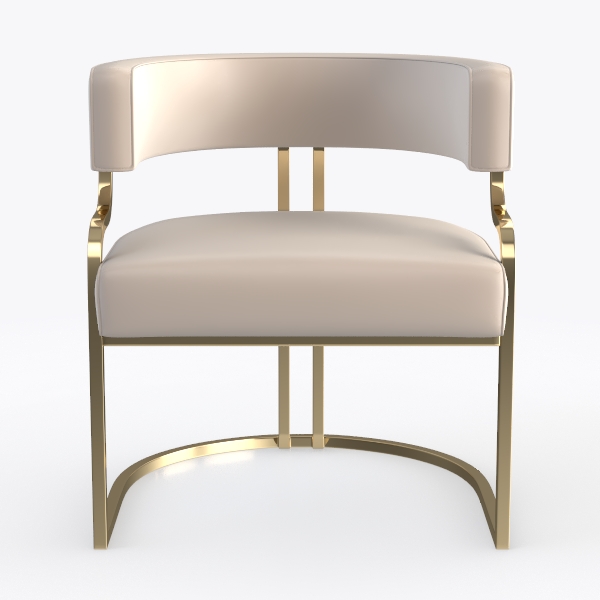 Inspired by mid-century modern minimalism, this armchair merges soft curves with a sleek silhouette. Its plush beige upholstery offers a gentle, inviting touch, while the lustrous gold metal frame adds a warm, opulent glow. The blend creates an elegant, refined look that elevates any space. Perfect for modern-luxe living rooms, pair with marble coffee tables and velvet sofas for cohesion. Plump seat cushions and curved armrests ensure optimal comfort, ideal for relaxation or casual gatherings.