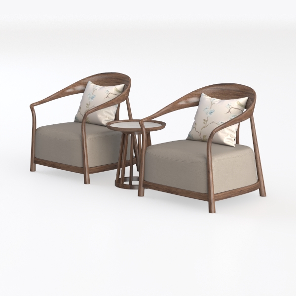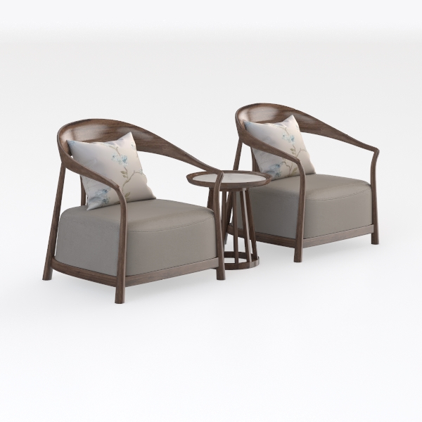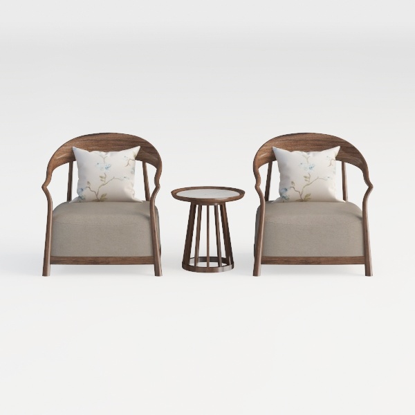 Inspired by flowing natural curves, this set blends warm wood tones with soft neutral upholstery. The smooth, polished wood grain and plush, textured cushions create a tactile and visual harmony, exuding calm. Perfect for modern minimalist or Scandinavian spaces, it elevates living rooms or reading corners, with wide armrests and a compact round table adding comfort and practicality.