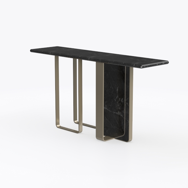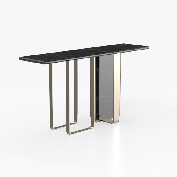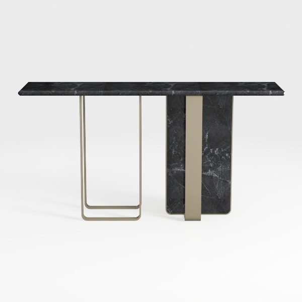 Inspired by modern minimalism, this console table blends natural stone's organic veins with sleek metallic accents. The smooth, veined marble top contrasts with slender, polished legs, creating a cool, sophisticated aesthetic with tactile depth. Ideal for entryways or living rooms, it elevates modern minimalist spaces, pairing beautifully with warm wood tones and soft lighting. A spacious top offers ample display space, while the lightweight yet sturdy metal base ensures stability and openness.