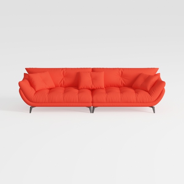 Drawing inspiration from mid-century modern design, this sofa merges nostalgic charm with contemporary simplicity, boasting gently curved lines that evoke the fluidity of 1970s furniture while keeping a sleek, uncluttered profile. The vibrant tangerine upholstery, crafted from a soft, textured fabric like plush velvet, offers immediate tactile allure—its supple surface yielding slightly under pressure, while tufted details add subtle depth without overwhelming the eye. The sofa’s rounded arms and low-slung silhouette feel inviting, making it a striking focal point that balances boldness with warmth. The rich, not garish, red hue infuses the space with energy, complementing neutral backdrops to enhance coziness.