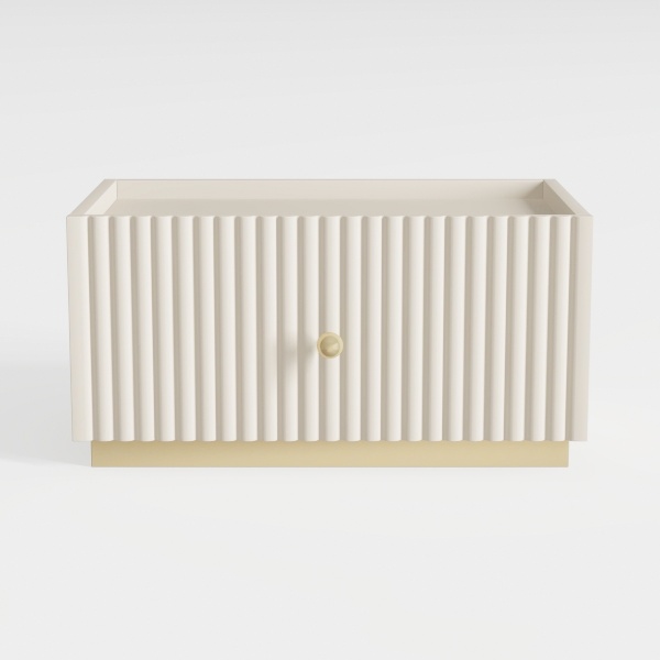 Inspired by classical architectural lines, this cabinet features vertical fluting that adds subtle texture and visual rhythm. Its smooth, matte white surface contrasts beautifully with the warm gold base and round handle, creating an elegant, modern-luxe vibe. Perfect for a minimalist living room or study, pair it with a velvet sofa and geometric rug for cohesion. The fluted design lightens its presence, while hidden storage offers practical daily organization.