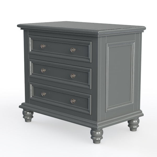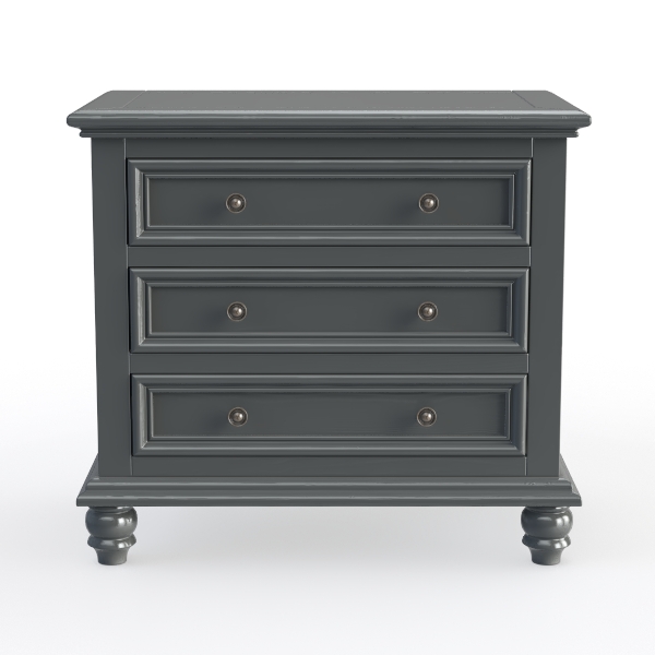 Rooted in classic mid-century design, this three-drawer cabinet features a smooth matte gray finish, contrasting warm wooden textures, with curved brass handles adding subtle elegance. Its compact silhouette fits seamlessly in a cozy bedroom or study, complementing minimalist, Scandinavian, or classic decor. Three spacious drawers offer ample storage, gliding smoothly for easy access, blending functionality and timeless charm.