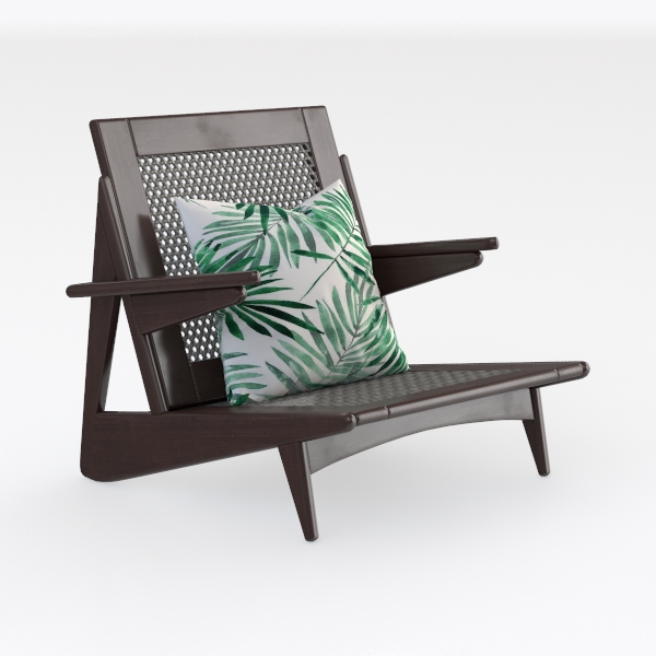 Drawing inspiration from nature’s organic beauty and artisanal craftsmanship, this piece blends warm, earthy tones with a touch of tropical vibrancy. The chair features a rich, dark wood frame with smooth, sanded surfaces that invite gentle touch—each grain visible, adding depth to its natural allure. The backrest, woven with a light, airy grid pattern, mimics the texture of handcrafted wicker, soft yet sturdy, creating a balance between structure and breathability.