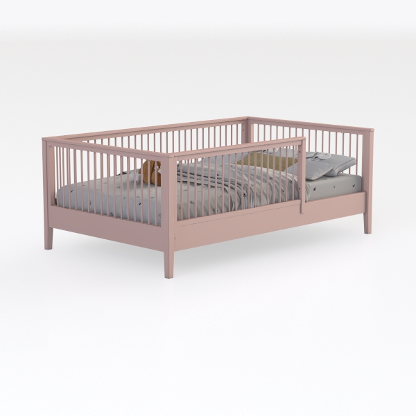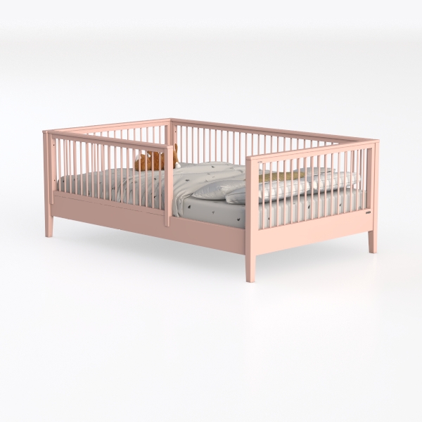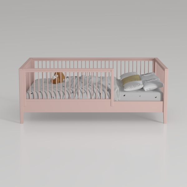 Inspired by gentle nature, this baby bed features a warm blush pink hue and smooth, polished wood. Light, airy with soft curves, it creates a cozy, safe vibe for a Scandinavian-inspired nursery. Sturdy slats ensure breathability, and adjustable mattress support grows with your little one, blending function and visual charm seamlessly.