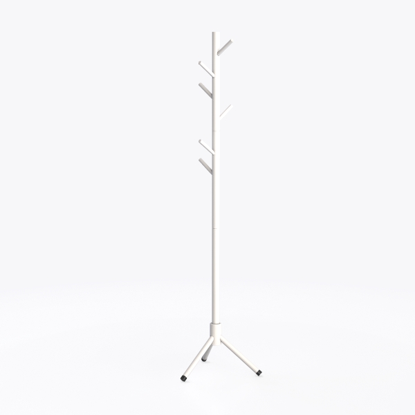 Inspired by minimalist nature, this elegant white coat rack features a sleek metal frame with a slender, upright design. Its smooth, polished surface reflects light, creating a clean, uncluttered look. The stable tripod base ensures balance, while multiple upper hooks provide ample space for coats, bags, and hats. Perfect for modern minimalist bedrooms or entryways, blending seamlessly with neutral decor to keep daily essentials organized.