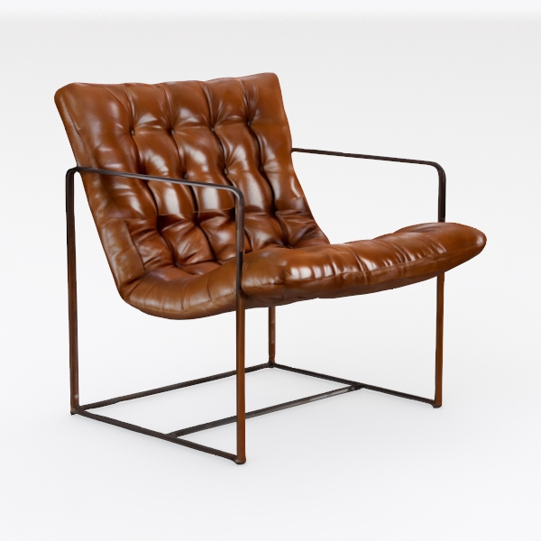 Drawing inspiration from mid-century modern design with industrial accents, this armchair blends timeless allure and modern utility. The warm, burnished leather upholstery, with its tufted pattern, feels smooth and supple to the touch, catching light gently, while the dark metal frame adds a sleek, structural contrast. Ideal for a cozy living room or a refined home office, it complements wooden coffee tables and brass floor lamps, enhancing both modern and vintage aesthetics. A deep, plush seat and sturdy armrests deliver exceptional comfort, perfect for long relaxation or casual get-togethers.