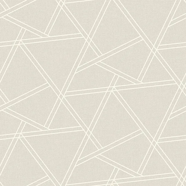 A 2D texture of a geometric pattern, featuring clean white lines and a neutral beige background with intricate intersecting triangular shapes. It has minimal polygons and is suitable for wallpaper, textile design, or digital decor.