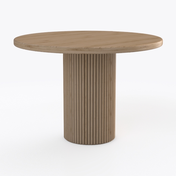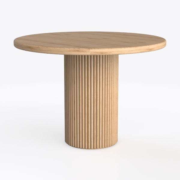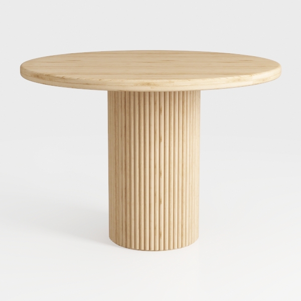 Crafted with inspiration from organic geometry, this round table features a smooth, light wood surface with subtle grain. Its vertical ridged base adds textural depth, while clean lines create a serene, uncluttered look—warm beige tone infuses softness. Ideal for modern minimal, Scandinavian, or Japanese-inspired spaces, pair with minimalist sofas, knit throws, and potted plants. Round top suits small gatherings, ridged base ensures stability, lightweight yet sturdy for daily use.