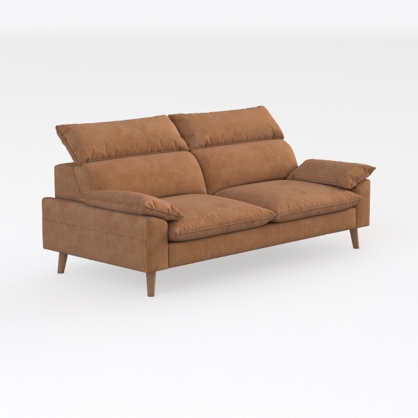 Inspired by the warm, earthy tones of sunlit autumn and the soft texture of handwoven wicker, this sofa marries natural comfort with modern simplicity. Its surface, crafted from a plush, corduroy-like fabric, feels like a gentle hug—each vertical ribbing catches light softly, creating a subtle, golden shimmer that mirrors the glow of fall leaves. The rich terracotta hue wraps the space in a cozy, inviting warmth, balancing vibrancy with a calm, grounded energy that feels both timeless and fresh.