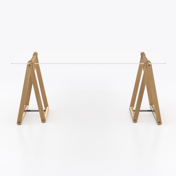 Inspired by natural geometric forms, like tree branches, this piece features a warm wooden frame with visible grain, offering a tactile, grounding feel. The clear glass top adds lightness, balancing the design for a minimalist look. Ideal for modern, Scandinavian-style living rooms or studies, it pairs with neutral sofas and greenery. Sturdy A-frame legs ensure stability, and the smooth glass surface is easy to clean, blending function and aesthetics.