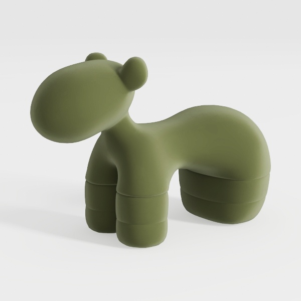 Inspired by organic animal forms and playful mid-century design, this whimsical green piece features a smooth, matte surface with soft, rounded edges. Its curved, childlike silhouette adds warmth, ideal for a cozy kids' room or playful accent in minimalist/bohemian spaces. Sturdy base supports light seating, blending decoration and practicality seamlessly.