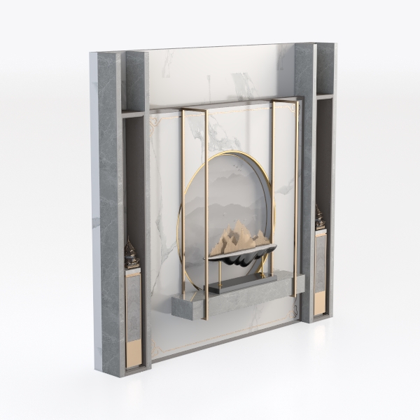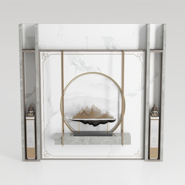 Inspired by traditional Chinese landscape and classical garden aesthetics, this home decor piece blends marble's smooth, refined texture with gold accents, adding elegant contrast. Rounded contours and mountain motifs create a soft, serene vibe, while side pagoda-like ornaments enhance cultural depth. Ideal for Chinese-style living rooms or foyers, it doubles as a space divider, elevating layering and tranquil charm.