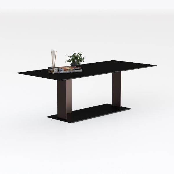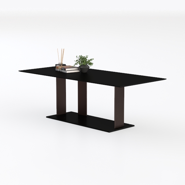 Inspired by minimalist architecture, this piece features a sleek black matte tabletop and warm dark wood base, exuding a calm, sophisticated vibe. Ideal for a modern living room or home office, pairing beautifully with marble decor and metallic accents, its spacious surface holds books, plants, or decor, while stable legs ensure steady support.