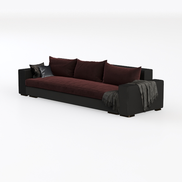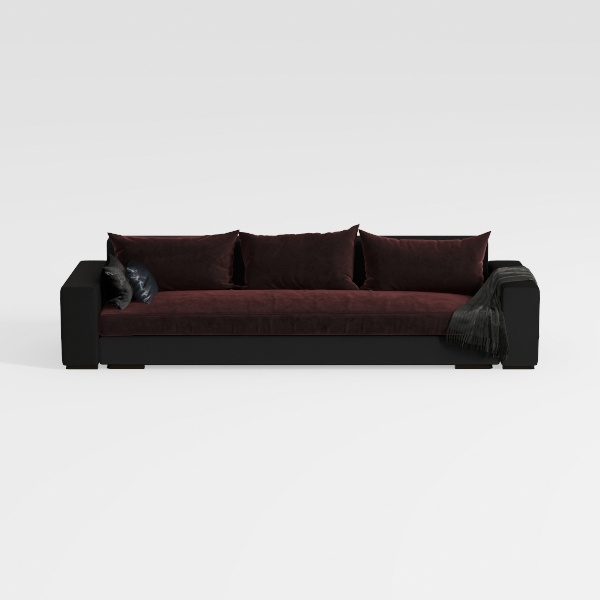 This sofa draws inspiration from the harmony of modern minimalism and tactile luxury, balancing clean lines with warm, inviting details. Its rich maroon upholstery, with a subtle velvet-like texture, feels surprisingly soft to the touch—each gentle press yielding to a plush, supportive surface—while the matte black frame, smooth and unadorned, grounds the piece with understated elegance. Visually, the deep, saturated hue creates a focal point that anchors a room, its simple silhouette allowing it to blend seamlessly into various aesthetics without overwhelming the space.
