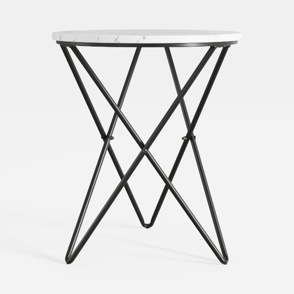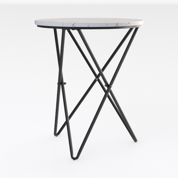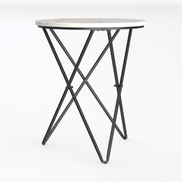 Inspired by minimalist design and natural textures, this piece features a smooth, marble-like tabletop with a glossy finish, paired with a sleek black metal frame. Its crisp intersecting lines form a clean silhouette, cool to the touch yet sturdy. Ideal for modern living rooms or home offices, it complements Scandinavian, minimalist, or contemporary chic styles, small yet functional for mugs, books, or decor.